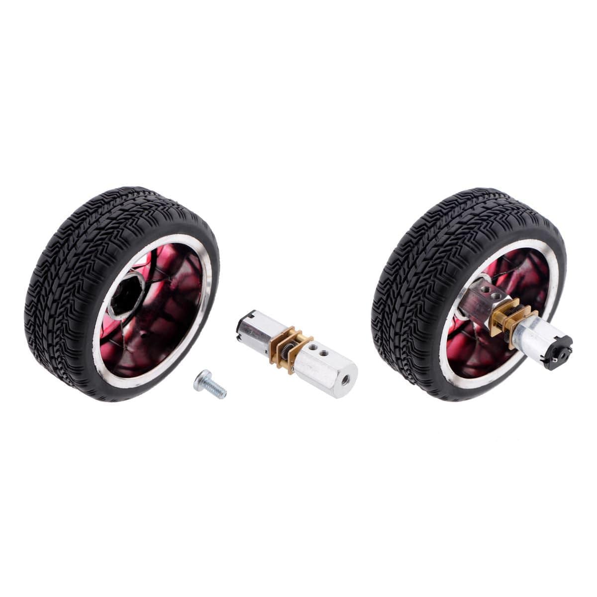 This version of the 12 mm hex adapter is 17mm in length and designed to work with 3mm diameter output shafts, including round and âDâ shafts. It works well with our Micro Metal Gearmotors (as shown in the images) and Mini Plastic Gearmotors, as well as the other 3mm shaft gearmotors. The wheel shown in the above picture is a hobby RC wheel that works with 12mm hex shafts.