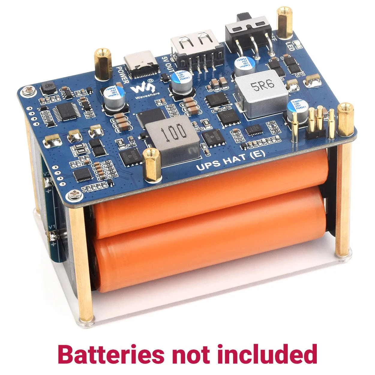 This is the Waveshare UPS (Uninterruptible Power Supply) HAT (E) for Raspberry Pi 5, Pi 4 and Pi 3, offering a stable 5V up to 6A via the high-power buck converter. It's a useful solution for short-term power backup to protect against power cuts, or even for those who wish to move their project between different power supplies.