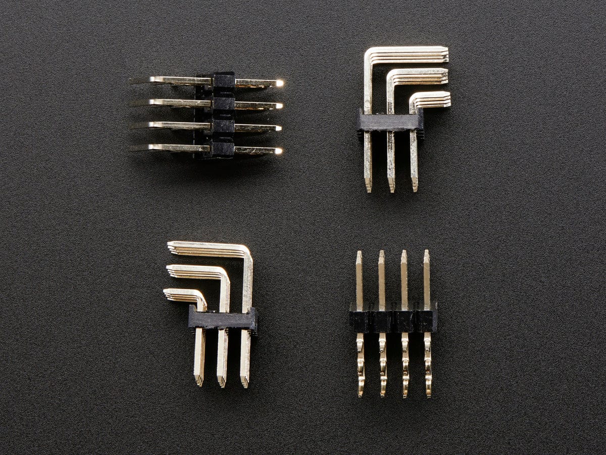 Three rows in a right angle header!? Yes! These chunks of 0.1" header has yet-another-row - handy for when you want to connect cables that come in sets of three, like perhaps sensors, or servos. These plug into any standard 0.1" spacing perf-boards or other PCBs and work nicely with our female-ended wire sets.