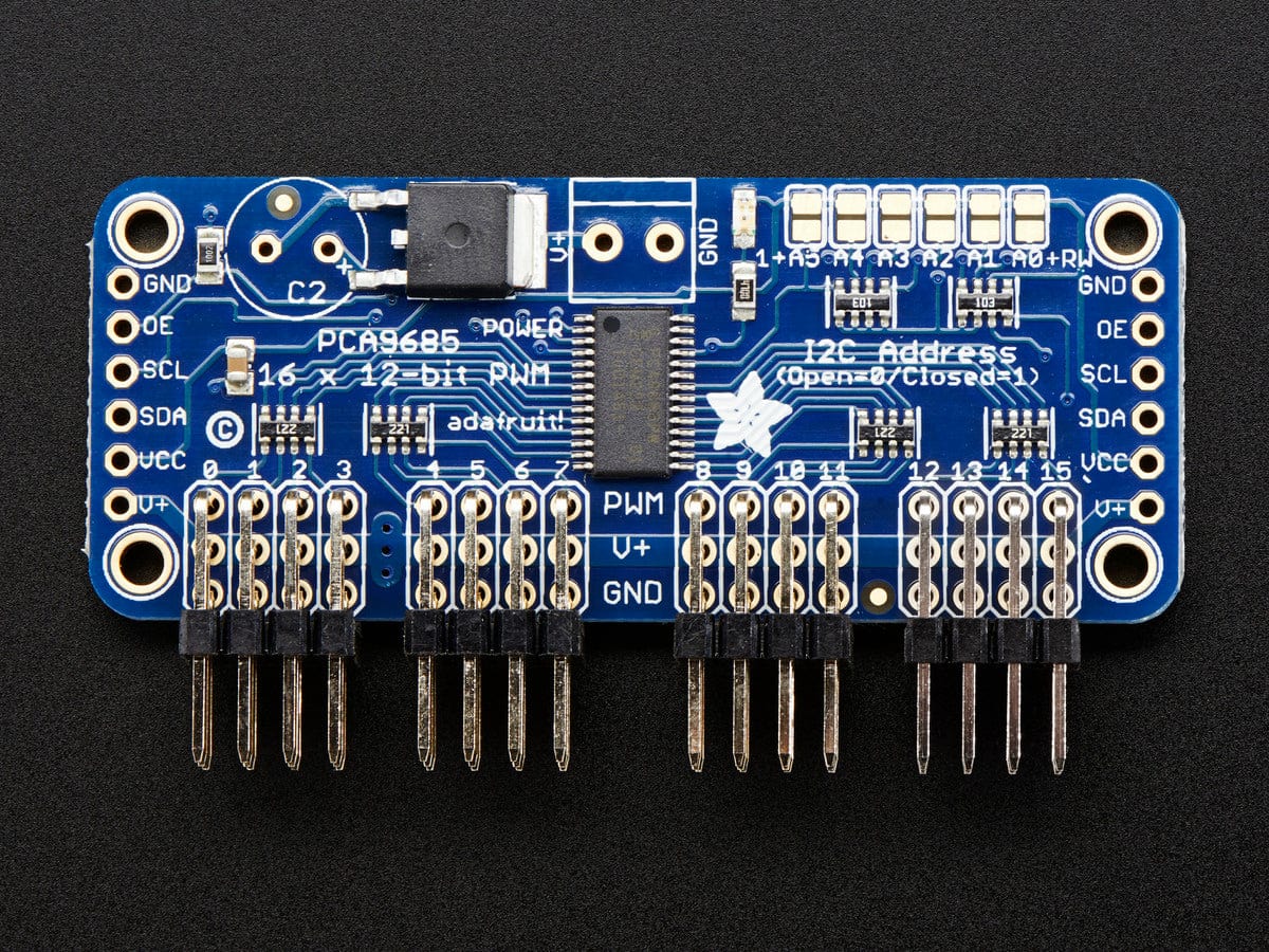 Comes in a set of four pieces, each piece is 3 rows by 4 rows. You can stack these next to each other in any direction. We think these are a great addition to our 16-channel PWM/Servo driver breakout, so we have a photo showing them installed above.
