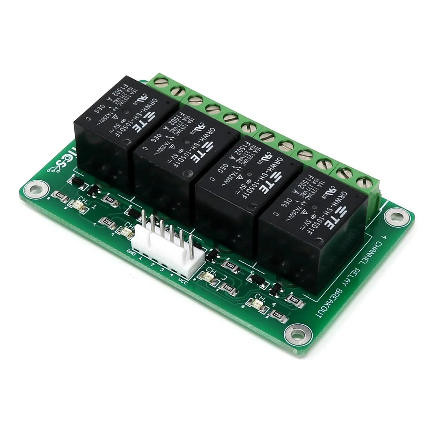 Need to drive high current or high voltage devices with your Arduino, Raspberry Pi, or other 3.3V / 5V logic compatible circuit, microcontroller, or single-board computer? This premium 4 channel 10A relay breakout board can handle it!