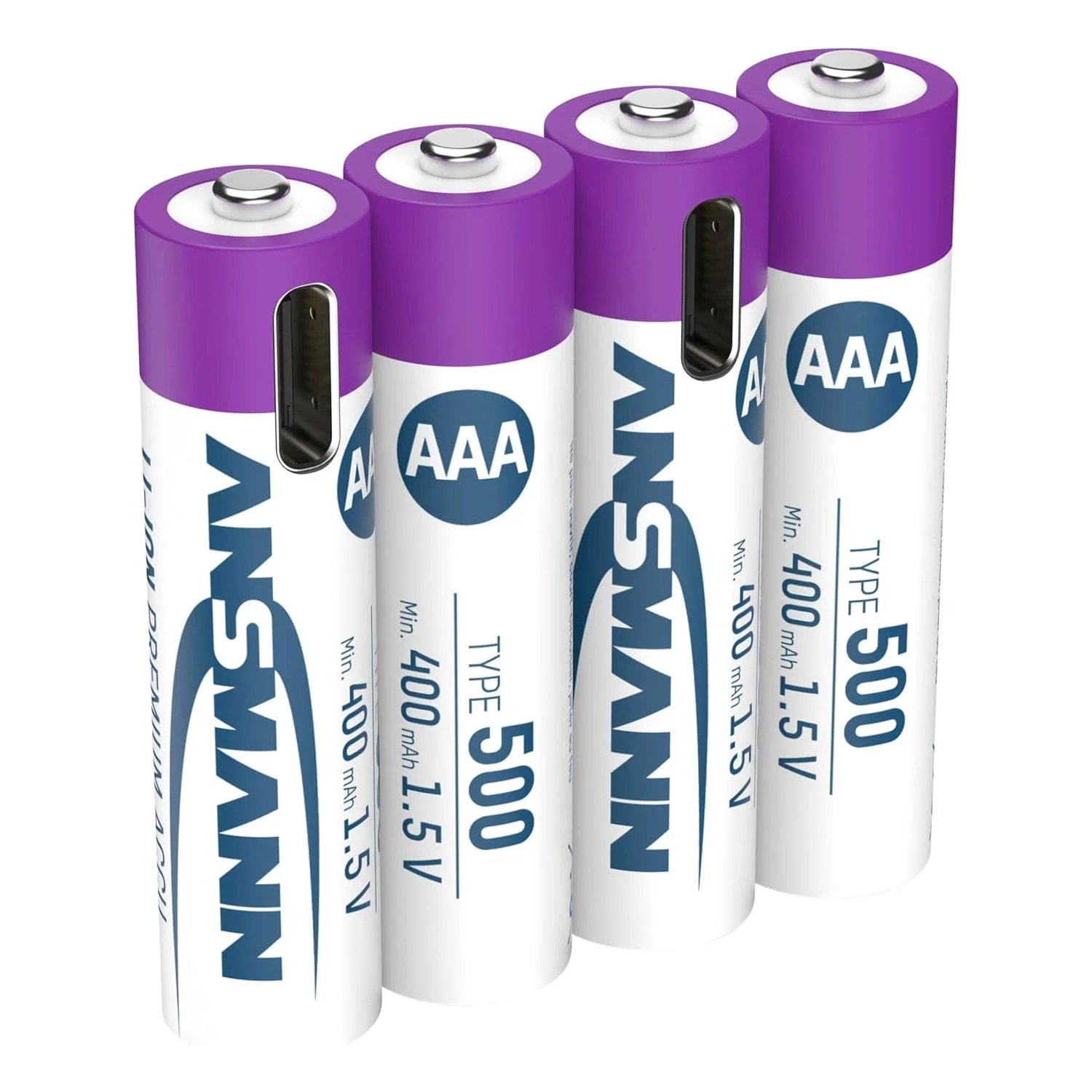 USB-C Rechargeable Li-Ion AAA Batteries (4-pack, 500mAh)