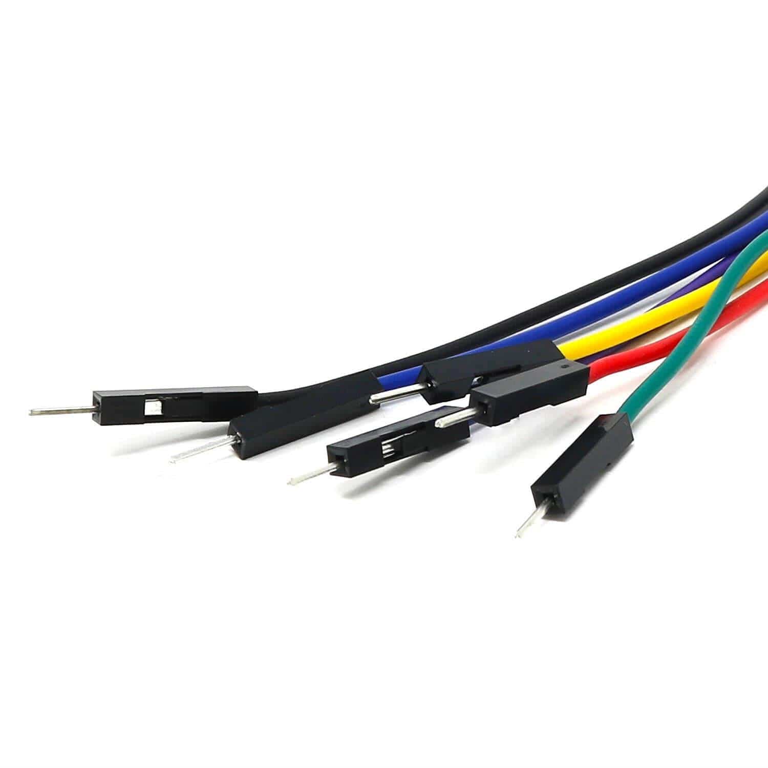 These cables are constructed with 22AWG wire and are rated to 300V. The cable measures 30cm in length and has a single Molex housing on one end and 6 individual Dupont Male jumper pins on the other end.