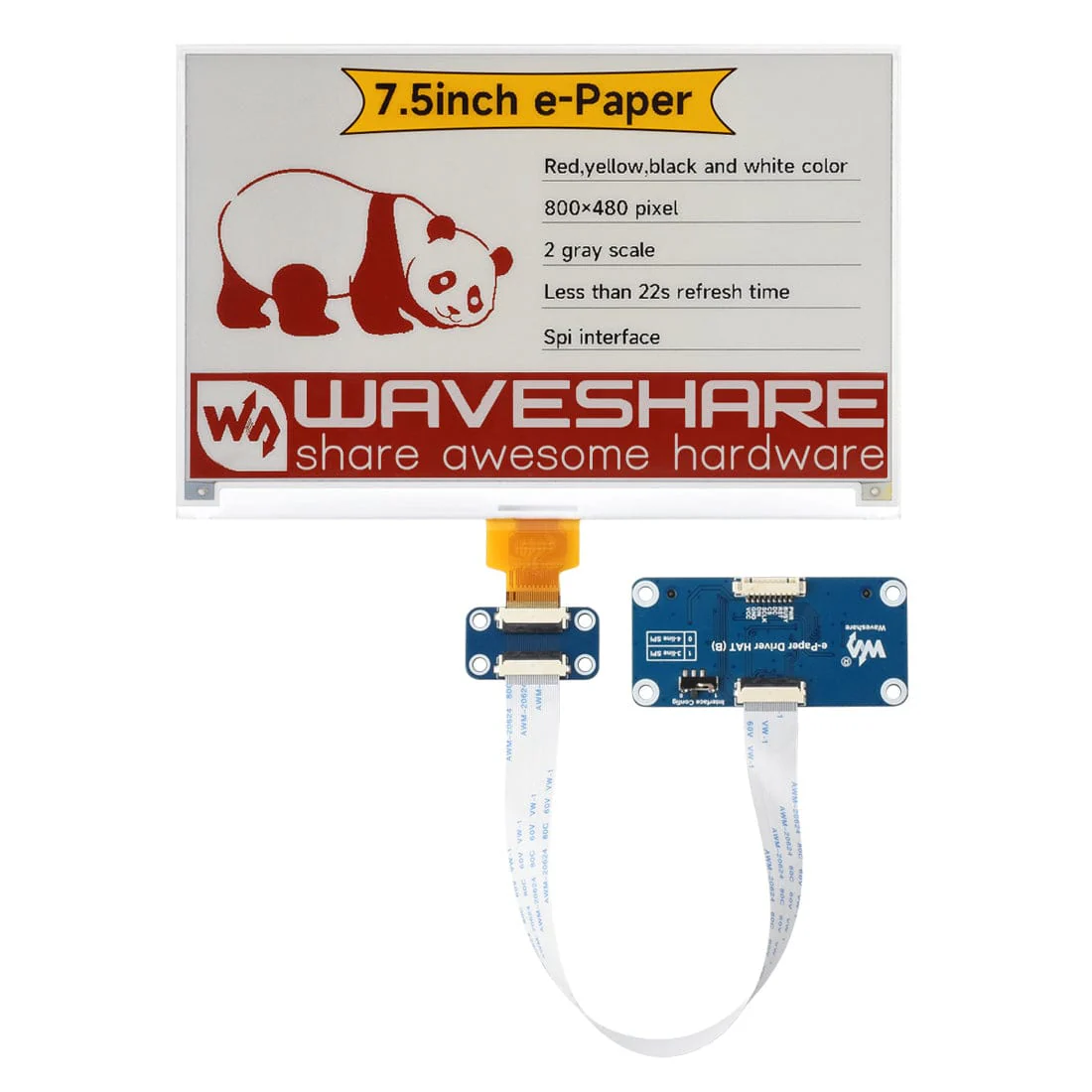 - Includes e-Paper Driver HAT for Raspberry Pi
