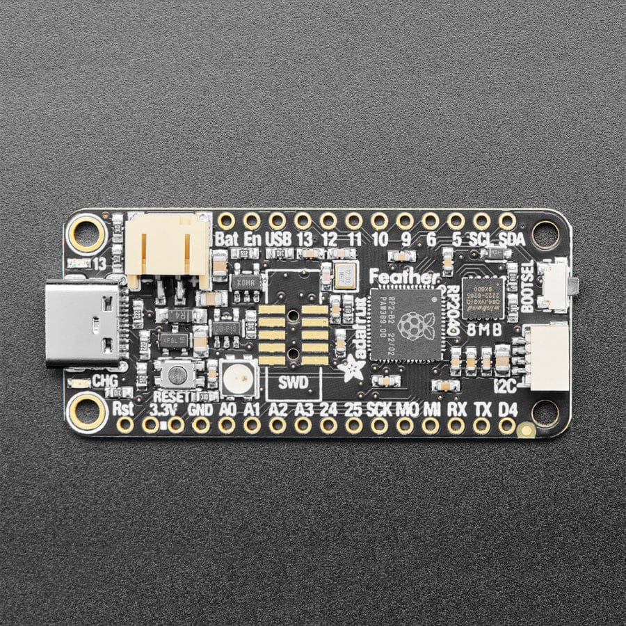 A new chip means a new Feather, and the Raspberry Pi RP2040 is no exception. When we saw this chip we thought "this chip is going to be awesome when we give it the Feather Treatment" and so we did! This Feather features the RP2040, and all niceties you know and love about Feather
