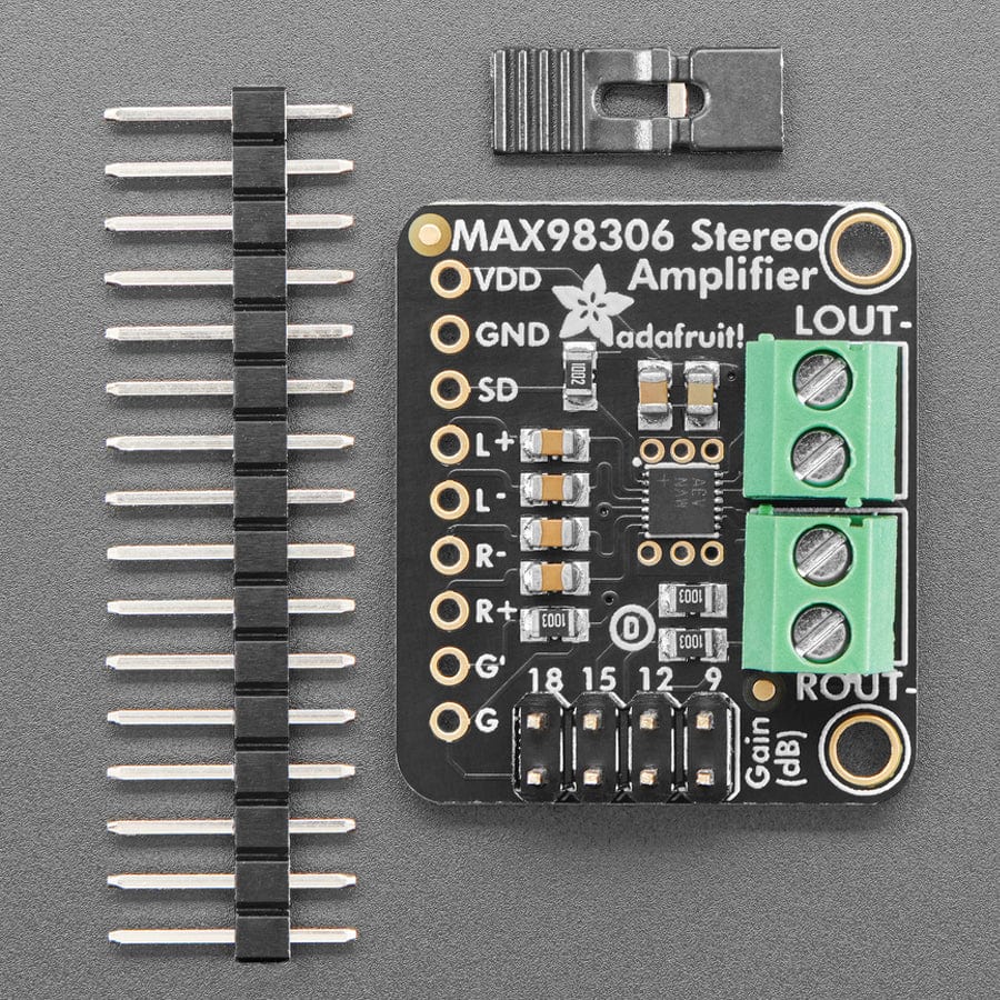 Comes with a fully assembled and tested breakout board with 1.0uF input capacitors. We also include a header to plug it into a breadboard, pre-soldered 3.5mm screw-terminal blocks so you can easily attach/detach your speakers, a pre-soldered 2x4 header, and a jumper to change the amplifier gain on the fly. You will be ready to rock in 15 minutes! Speakers are not included; use any 3ohm or greater impedance speakers.