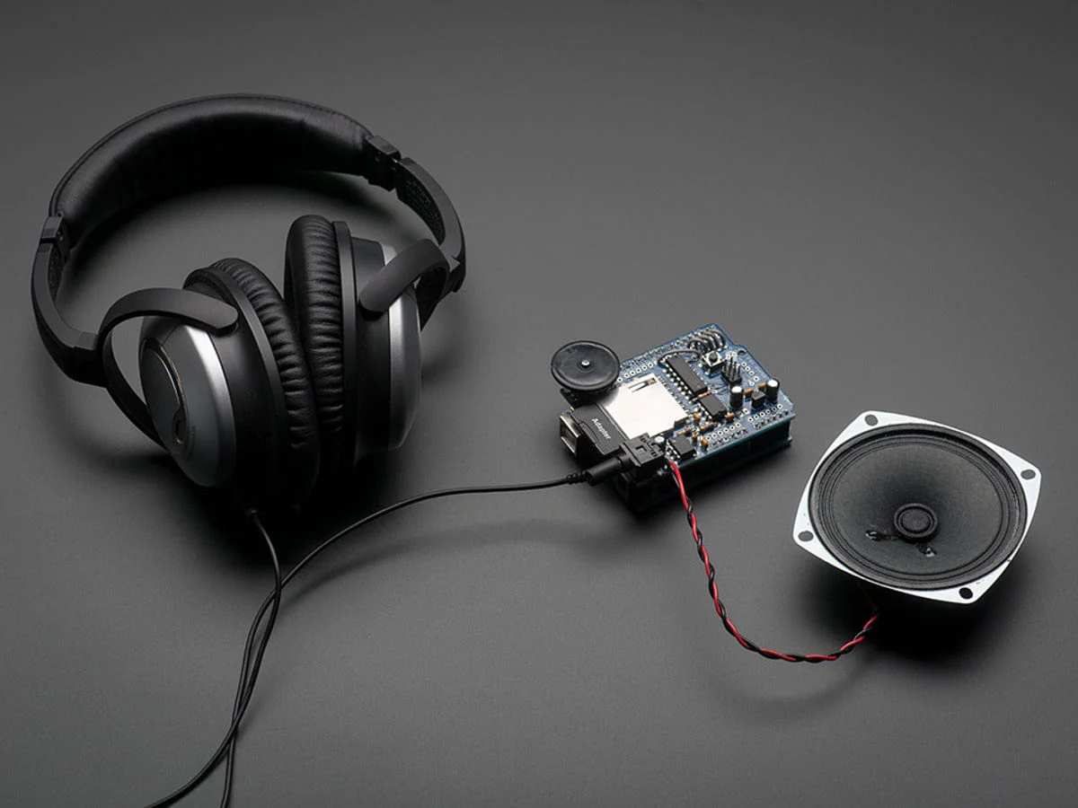 The shield comes with an Arduino library for easy use; simply drag uncompressed wave files onto the SD card and plug it in. Then use the library to play audio when buttons are pressed, or when a sensor goes off, or when serial data is received, etc. Audio is played asynchronously as an interrupt, so the Arduino can perform tasks while the audio is playing.