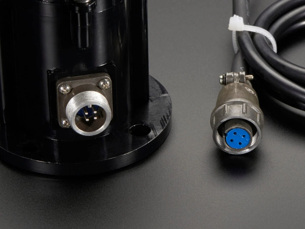 To use, connect the black wire to power and signal ground, the brown wire to 7-24VDC (we used 9V with success) and measure the analog voltage on the blue wire. The voltage will range from 0.4V (0 m/s wind) up to 2.0V (for 32.4m/s wind speed). That's it! The sensor is rugged, and easy to mount. The cable can easily disconnect with a few twists and has a weatherproof connector.