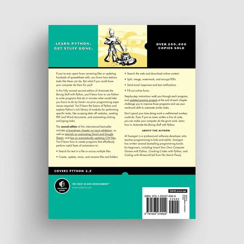 The second edition of this international fan favourite includes a brand-new chapter on input validation, as well as tutorials on automating Gmail and Google Sheets, plus tips on automatically updating CSV files. You’ll learn how to create programs that effortlessly perform useful feats of automation to: