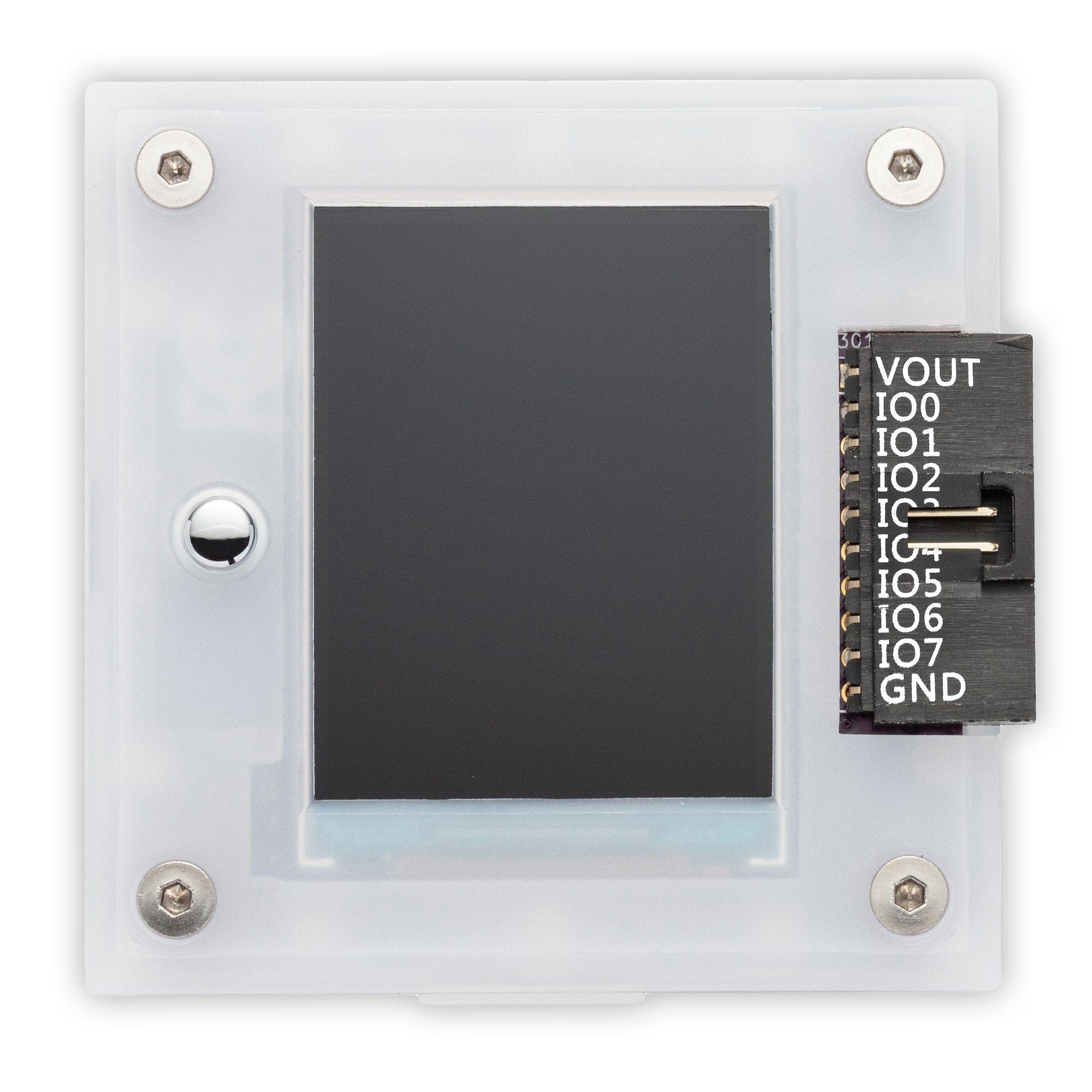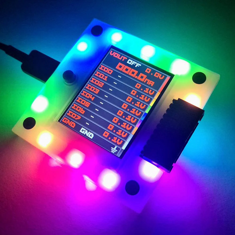 - LCD - A beautiful 240x320 pixel color IPS (all angle viewing) LCD acts as a pin label, while also showing the voltage on each pin and the current consumption of the programmable power supply unit
