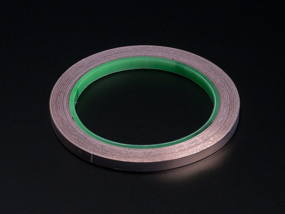 Copper tape can be an interesting addition to your toolbox. The tape itself is made of thin pure copper so its extremely flexible and can take on nearly any shape. You can easily solder to it, and the tape itself can carry current just like a wire. On the back is an electrically conductive adhesive. The adhesive can't carry significant current but it is very handy for sensing applications where you don't want to solder the copper tape.