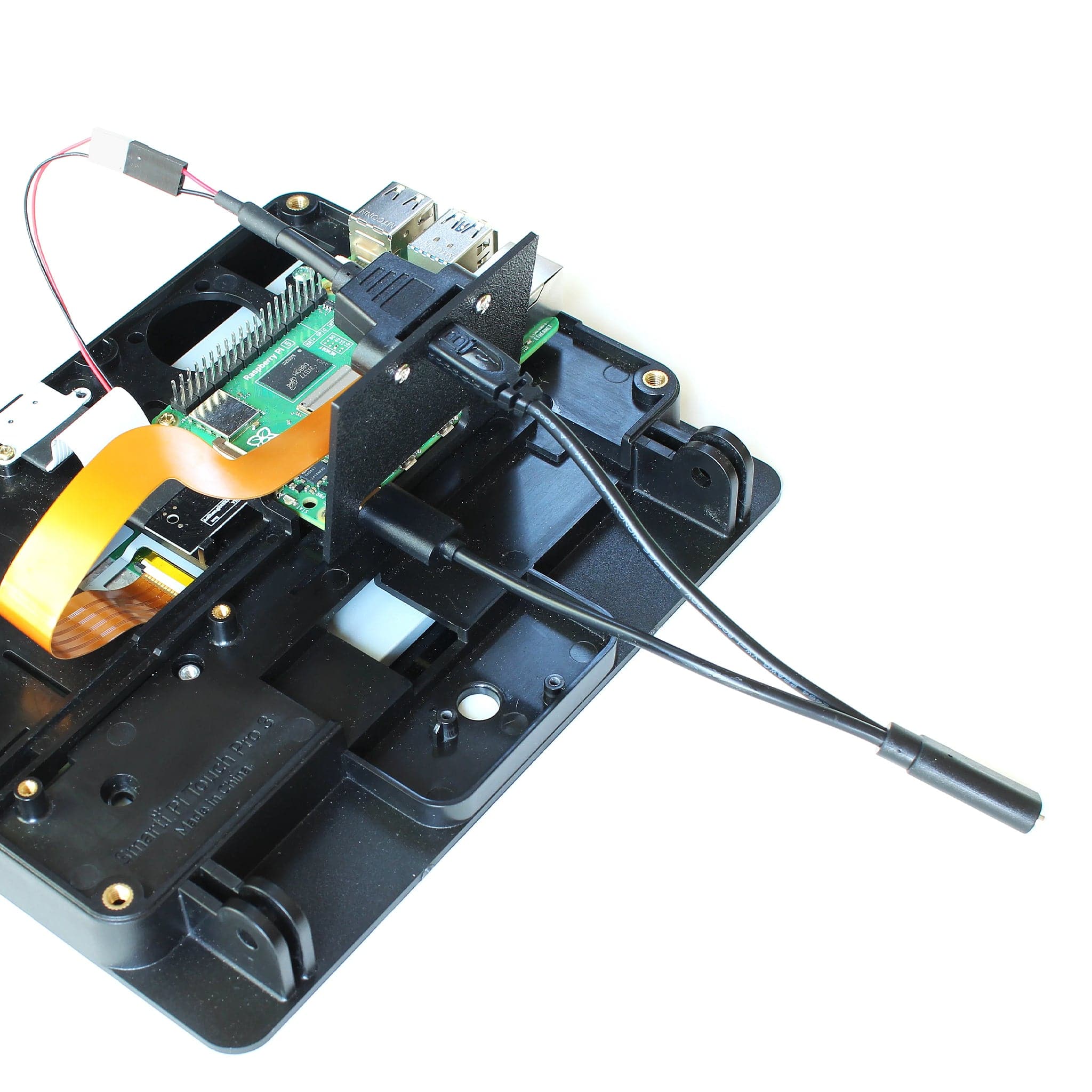 The default method of powering the Raspberry Pi Touch Display 2 in the SmartiPi Touch Pro 3 is using the Raspberry Pi GPIO. This kit allows you to power the Raspberry Pi Touch Display 2 and Raspberry Pi at the same time with your USB-C power supply.