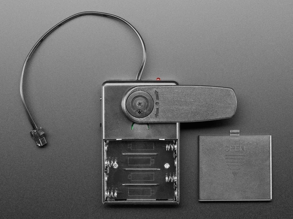 A small, portable inverter for EL wire. Powers off of 4 AAA batteries (not included!), it can drive 3-4 meters (10 to 13 feet) of our high-brightness EL wire OR 1 meter (3 feet) of EL tape OR a 10cmx10cm piece of EL panel for about 7 hours.