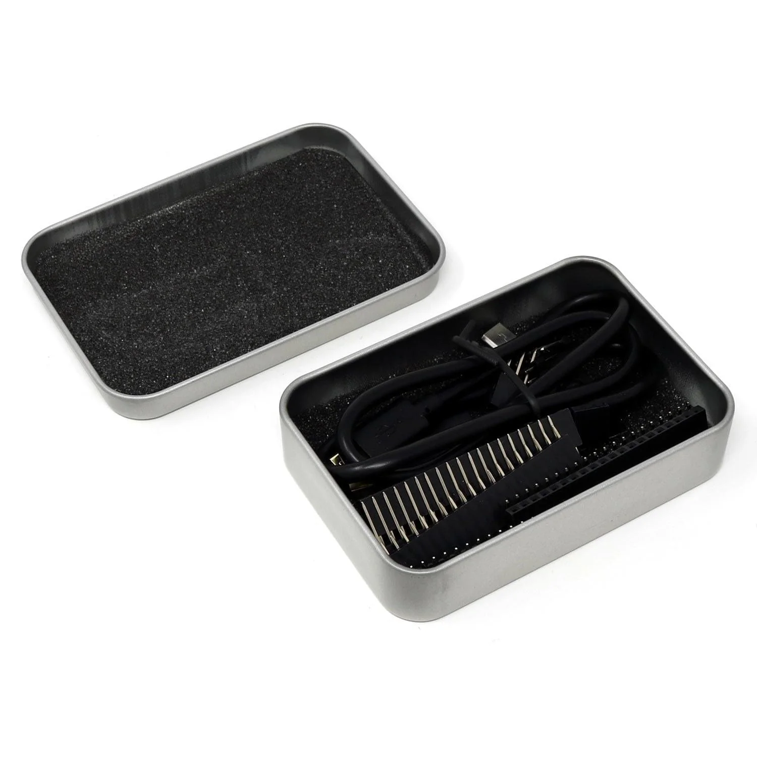 The entire kit comes in a small metal tin, ideal for keeping your Raspberry Pi Pico safe and protected.