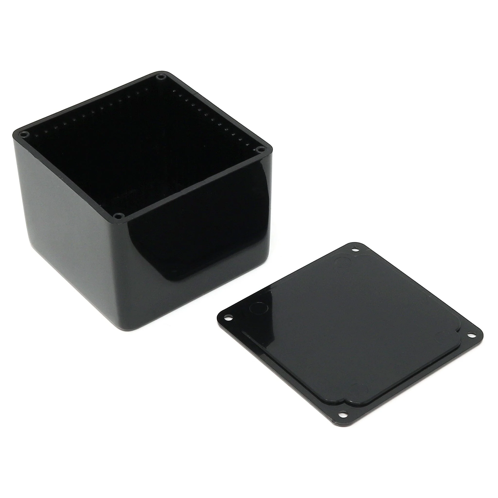 The enclosure is made from high-gloss, high-impact ABS (UL94-HB) which is easy to cut, drill, machine and modify for your project. The enclosure is assembled using four included cross-head screws which drive into the plastic threaded lid, and has been designed to meet the requirements of IP54.