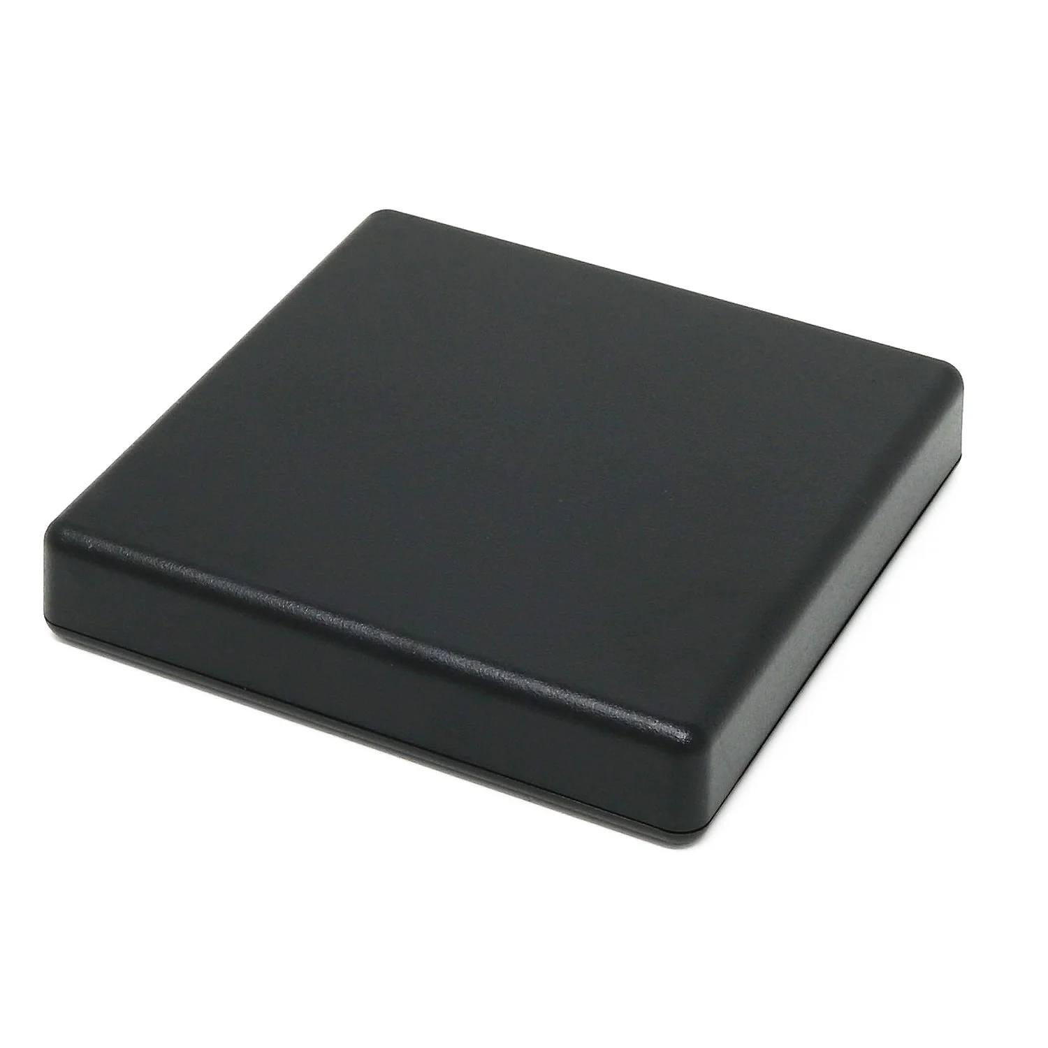 The Hammond range of ABS handheld enclosures are a firm favourite amongst makers as they're an easy starting point for a small, custom enclosure. This model is a Hammond 1551XXBK 80mm x 80mm x 15mm enclosure.