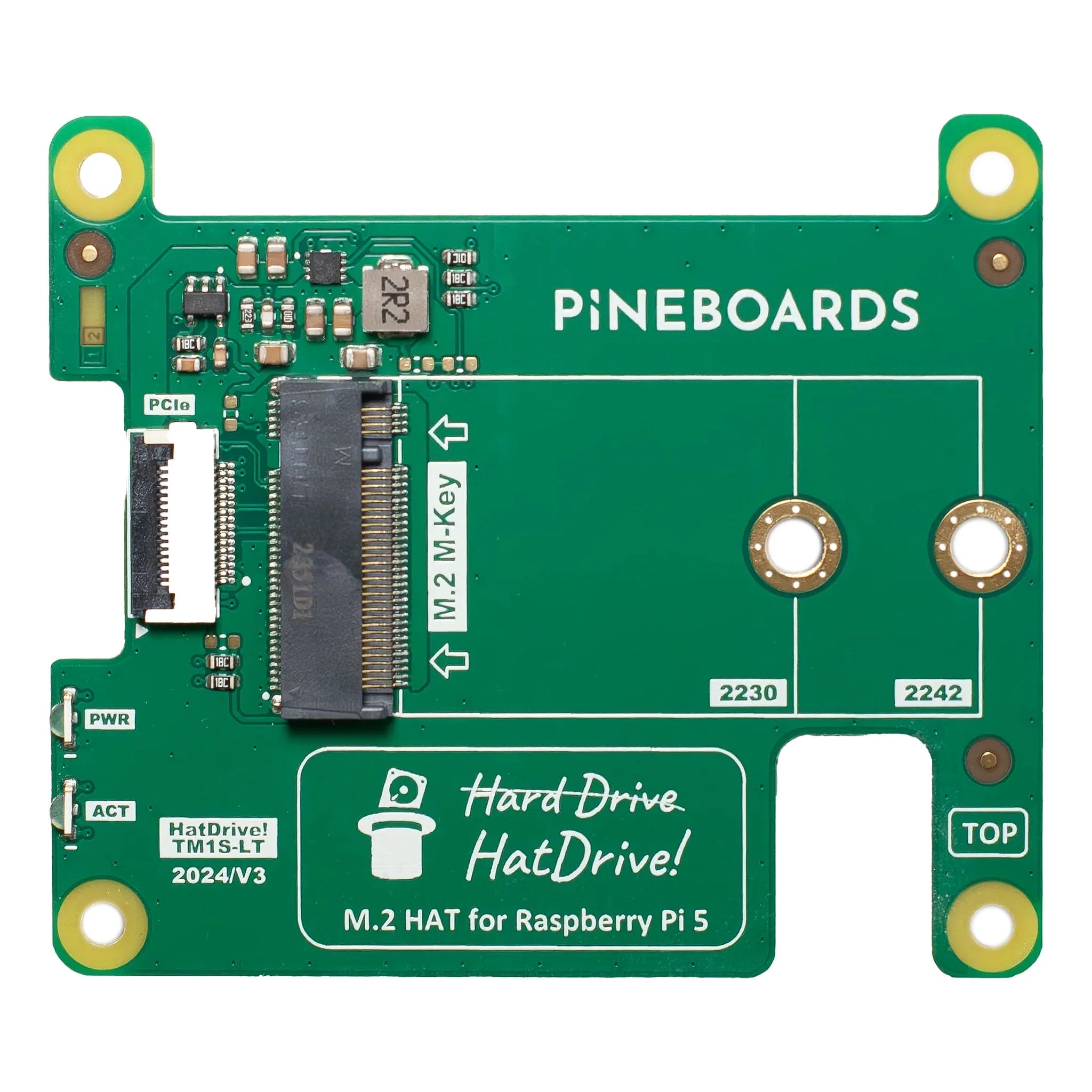 This version retains all the high-performance features of the original HatDrive! Top minus the 2x20 pin GPIO expansion header, making it a cost-effective solution for those not requiring board stacking capabilities.