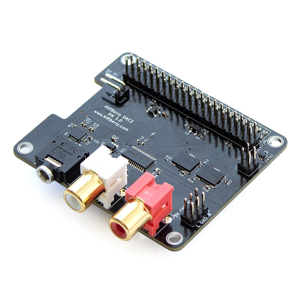 The HiFiBerry DAC2 Pro is a high-resolution digital-to-analogue and analogue-to-digital converter for the Raspberry Pi (newer models with a 40-pin GPIO connector).