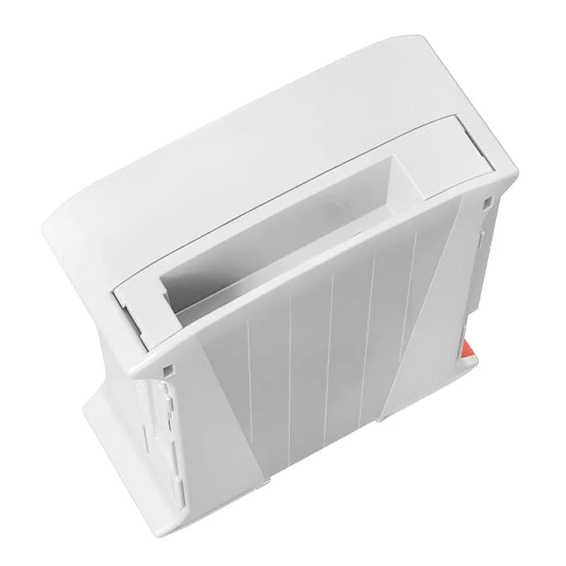 A compact (45mm wide), vertical DIN rail enclosure designed for the Raspberry Pi 5. Made from a PC/ABS Cycoloy 7240 Sabic blend, it features secure clip-in mounting, integrated Pi mounts, and includes a DIN rail hook.