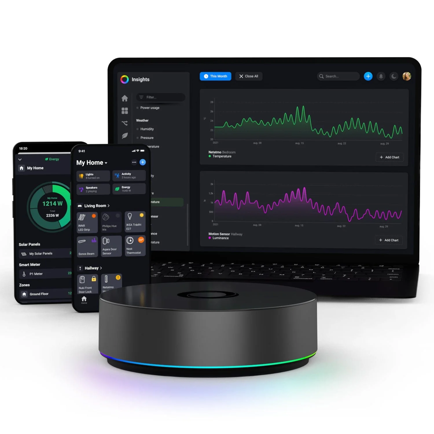 Homey Pro 2023 (2GB) is a powerful smart home hub that processes everything locally, so it stays responsive and reliable - even when your internet goes down. It works with over 50,000+ devices from more than 1,000 brands, including Shelly, Google Assistant, Amazon Alexa and Siri - plus everything in the Homey App Store; Flows, Insights, Energy tracking, Advanced Flow, HomeyScript, and more.