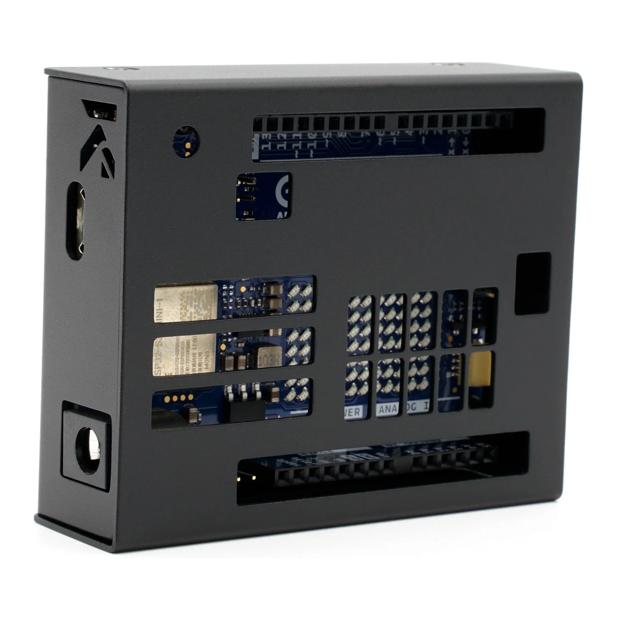 This KKSB Case has bigger slots on the cover to minimise wireless signal interference, making it ideal for Arduino UNO R4 WiFi projects. Wider slots allow for easy monitoring of GPIO pin definitions, and separate slots on the cover make LED indicator monitoring possible.