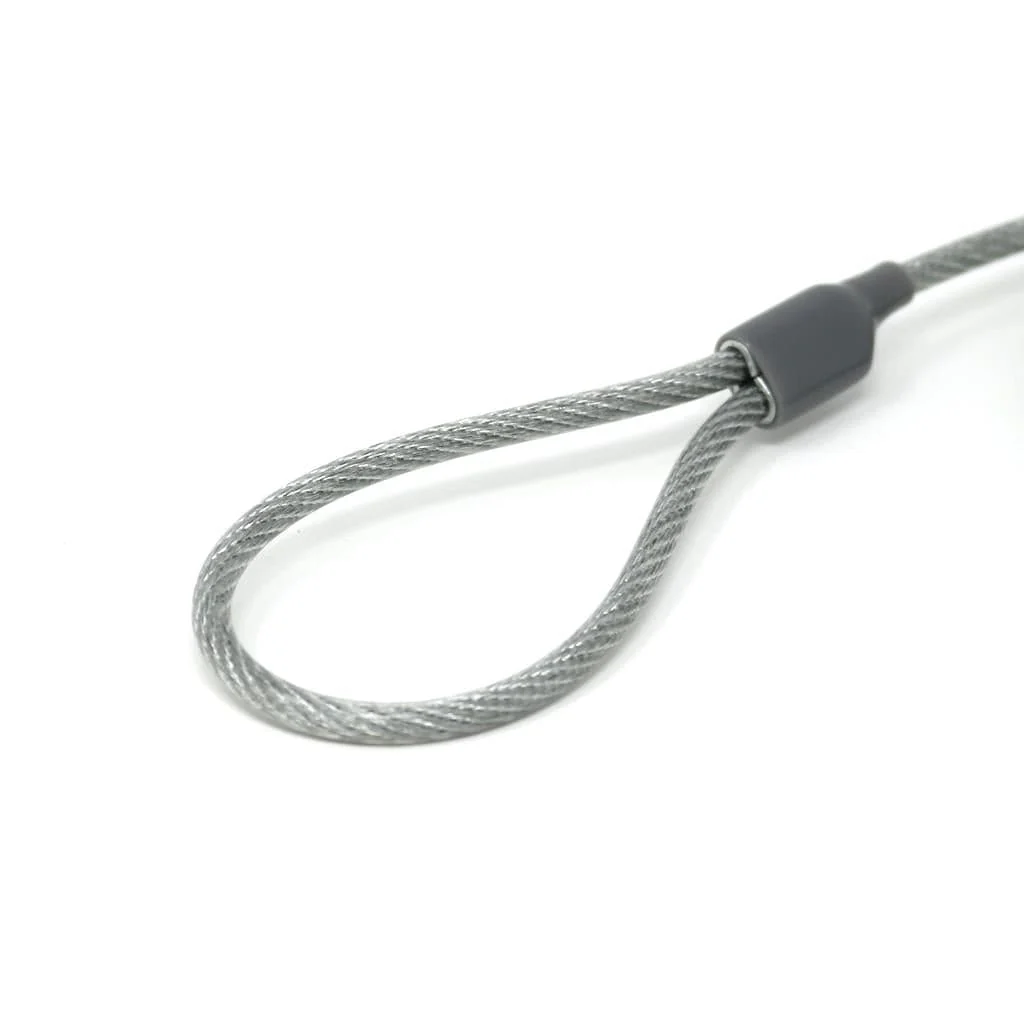 The cable is 1.5m long with the key lock on one side and a loop on the other for securing your device - no padlock or other hardware required.