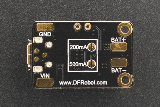 The charger adopts a TP4056X lithium battery charging IC, which guarantees you quick and safe charging. Three output current modes can be easily switched by selecting different bonding pads on the backside (the default output current is set to 50mA). The thermal feedback inside the TP4056X can automatically adjust the charging current to limit the chip temperature under high power operation or high ambient temperature conditions.