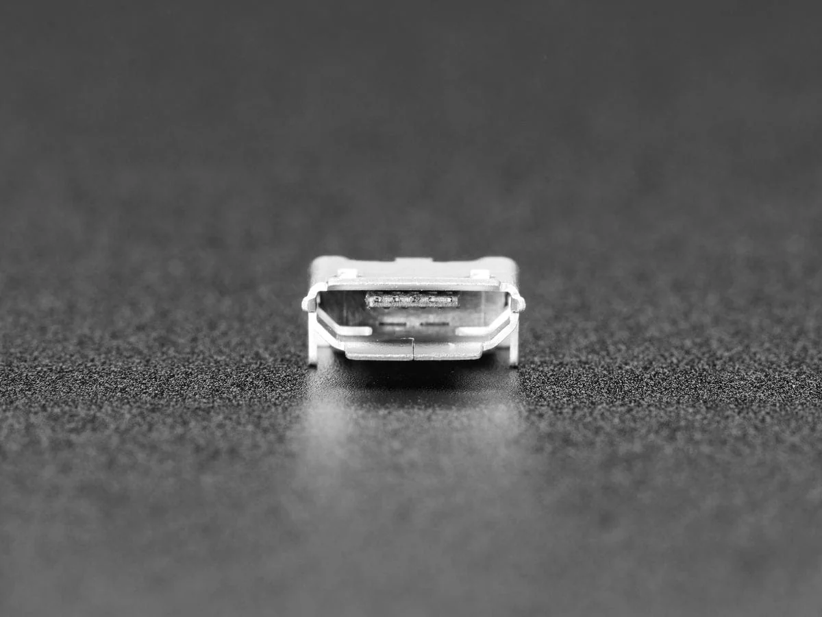 If you're a DIY enthusiast who likes to micro-manage your project's connections, here is a 5-pack of some micro USB connectors! They're sturdy metal with 4 through-hole mounting tabs, its really hard to rip these off a PCB. In an SMT line you can just paste over the through holes and the pads will solder in place.
