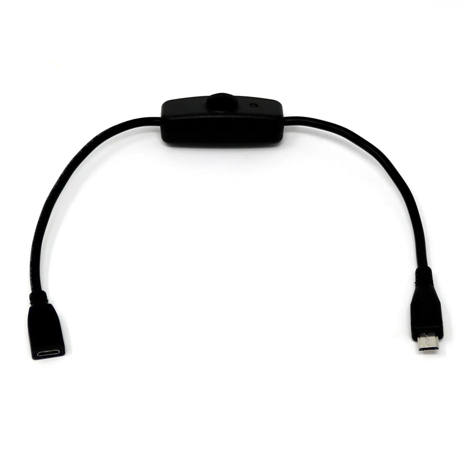 The cable is Micro-USB female one end and Micro-USB the other, meaning you can continue to use your Official Raspberry Pi Power Supply with the added benefit of a power switch.