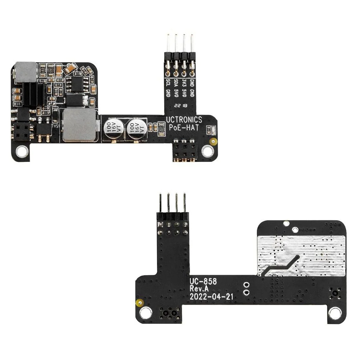 Following customer feedback, Uctronics have updated this PoE HAT to make it compatible with a wider range of switch brands as well as making it compatible with non-standard 48V PoE power supplies (through 45+, 78-), PoE input 40-57V with multiple protection circuits.