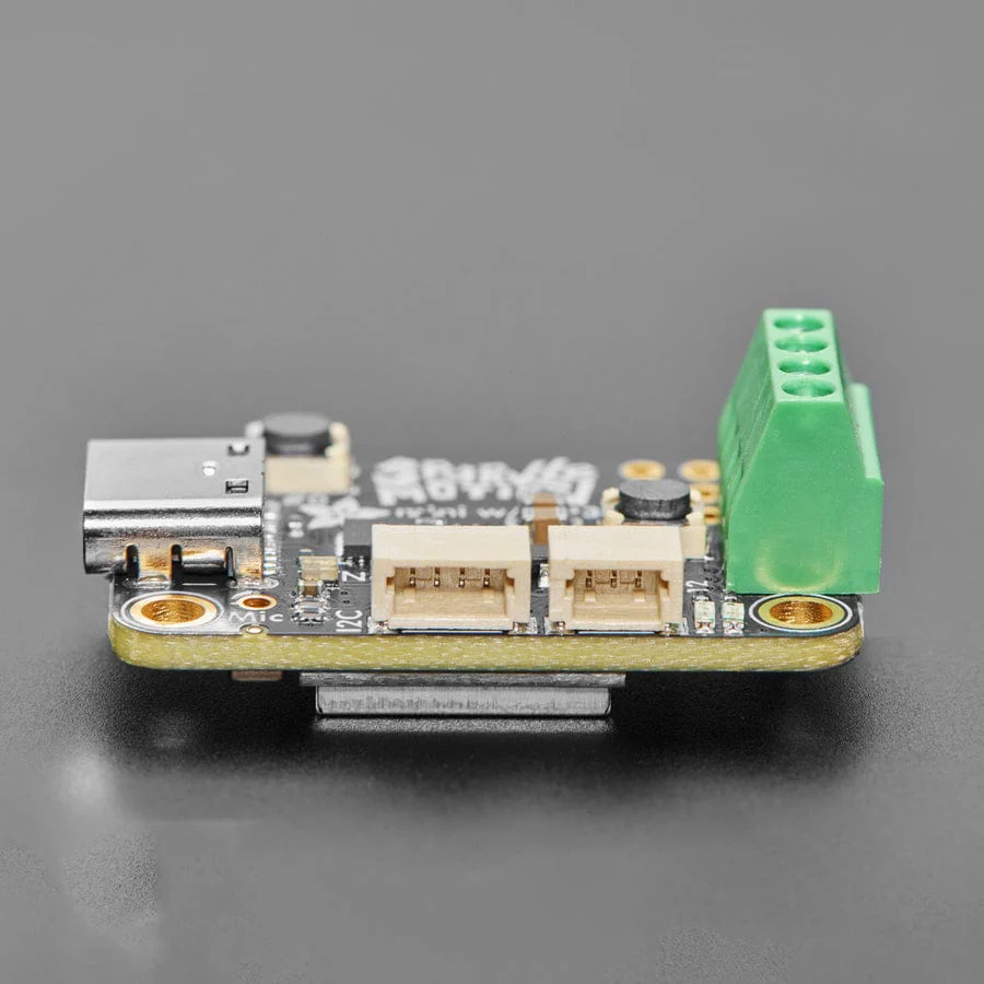 This version includes a pre-soldered terminal block, which means no soldering is required to get started: a small screwdriver will get you going instantly. However, the board is bulkier, and the terminal block overlaps half of one of the breakout pads. (We also sell a Mini Sparkle Motion - WLED-friendly ESP32 NeoPixel LED Driver, which comes without the terminal block).