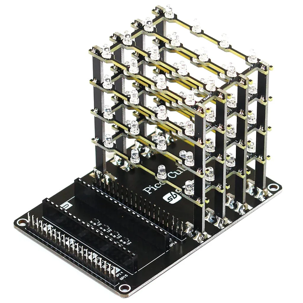 The Pico Cube is a 4x4x4 LED Cube add-on for the Raspberry Pi Pico (not included) with a 5V operating voltage - and this version comes pre-soldered for you! The Pico cube is monochromatic, using red no less than 64 LEDs, which is a fun way to learn how to program with MicroPython and RP2040.