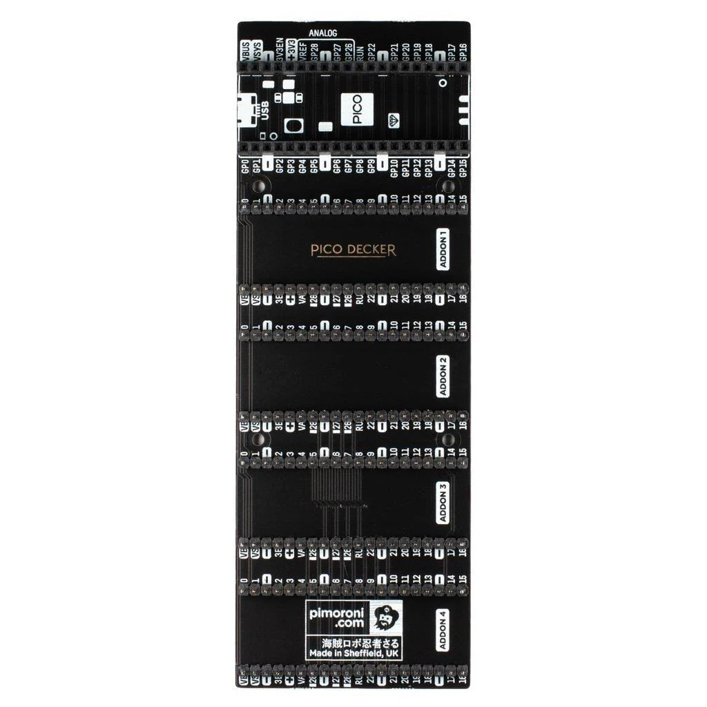 Quadruplicate your GPIO pins and attach up to four add-ons to a single Raspberry Pi Pico with our formidable Pico Decker expander board!