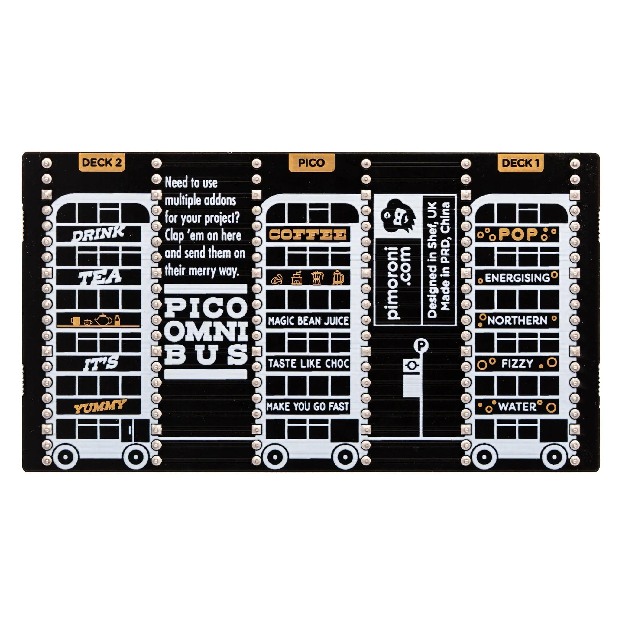 Struggling to choose which Pico add-on to go for? Pico Omnibus lets you plug in two Pico Packs or Bases at once*, or you can use the extra set of male GPIO pins to easily attach other devices, jumper wires or circuitry - very useful for prototyping. We've added useful labels to all three sets of connectors, so you can be sure that all those lovely wires are going to the right places. We've also thrown in some little feet to keep everything solid.