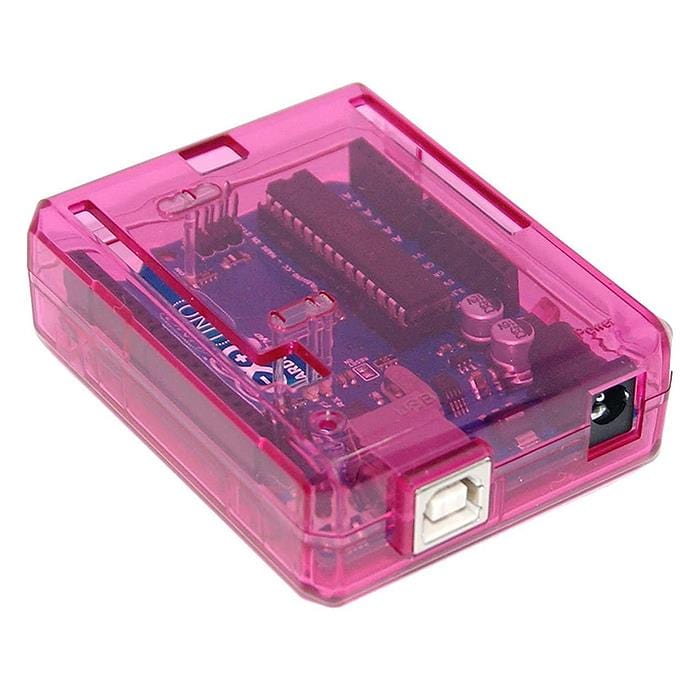 This protective case has been designed specifically for the Arduino Uno and is available in a range of different colours - this is the pink version!