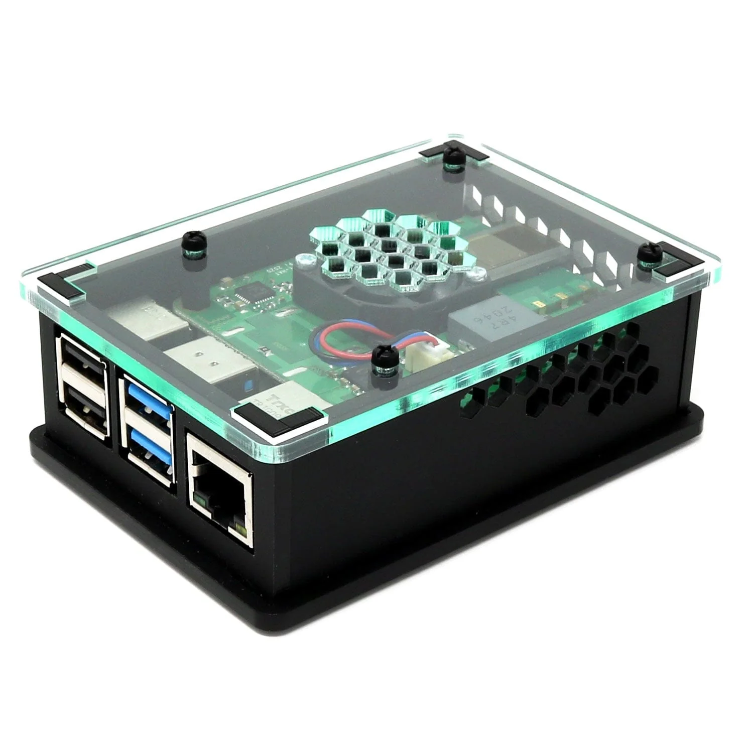 Designed to be stylish and functional, the PoE HAT+ Case features side and top 'hex' ventilation for the PoE+ HAT fan to keep your Raspberry Pi nice and cool, and enables access to all the Raspberry Pi Ports whilst keeping both boards safe and sound!