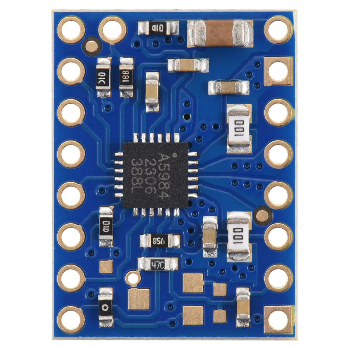 We are offering these carrier boards with support from Allegro Microsystems as an easy way to control bipolar stepper motors using their A5984 DMOS Microstepping Driver with Translator and Overcurrent Protection; we therefore recommend careful reading of the A5984 datasheet before using this product.