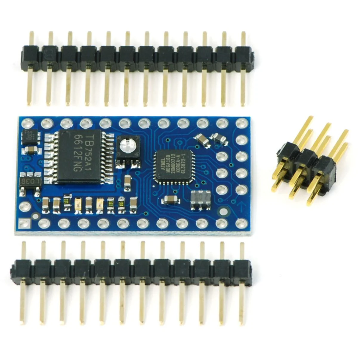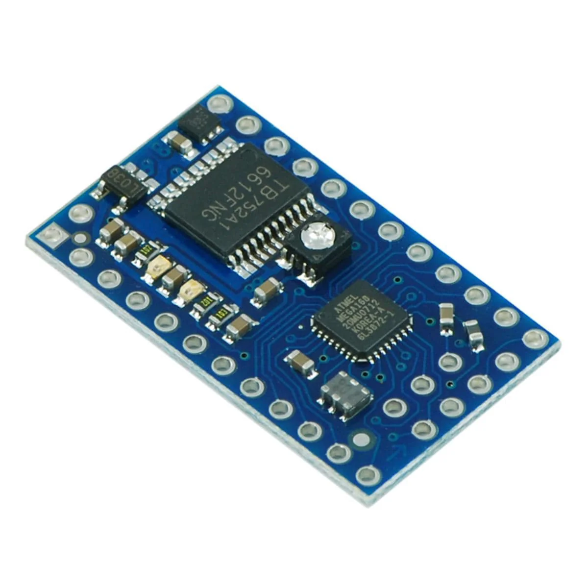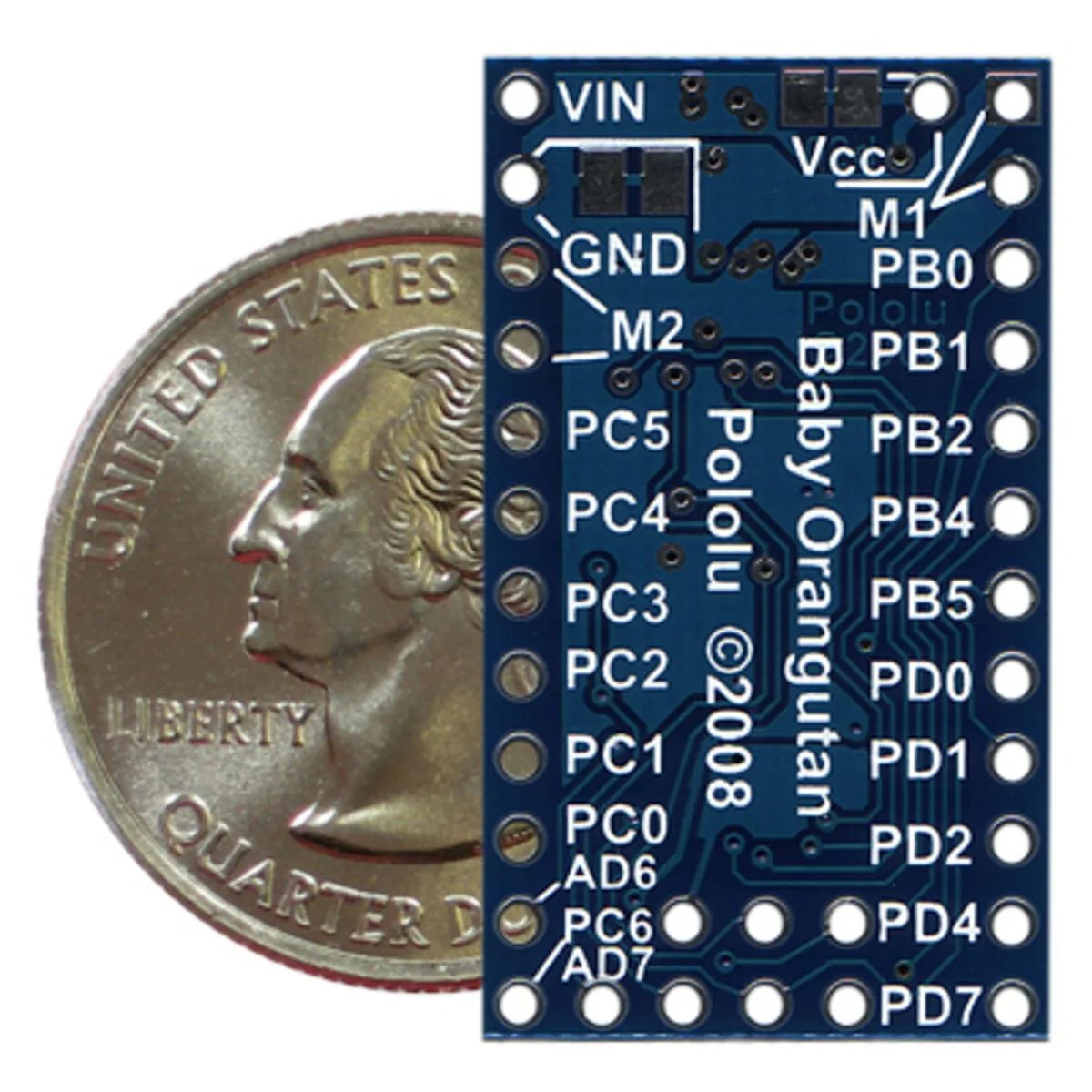 The Baby Orangutan B-328 is a very compact but complete robot controller, packing a high-performance ATmega328P AVR microcontroller (with 32 KB of program memory and 2 KB of RAM) and two motor drive channels in the same 24-pin form factor as competing units that include just a microcontroller.