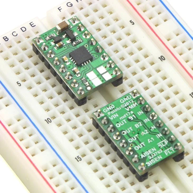- Output current: 1.2 A continuous (2 A peak) per motor