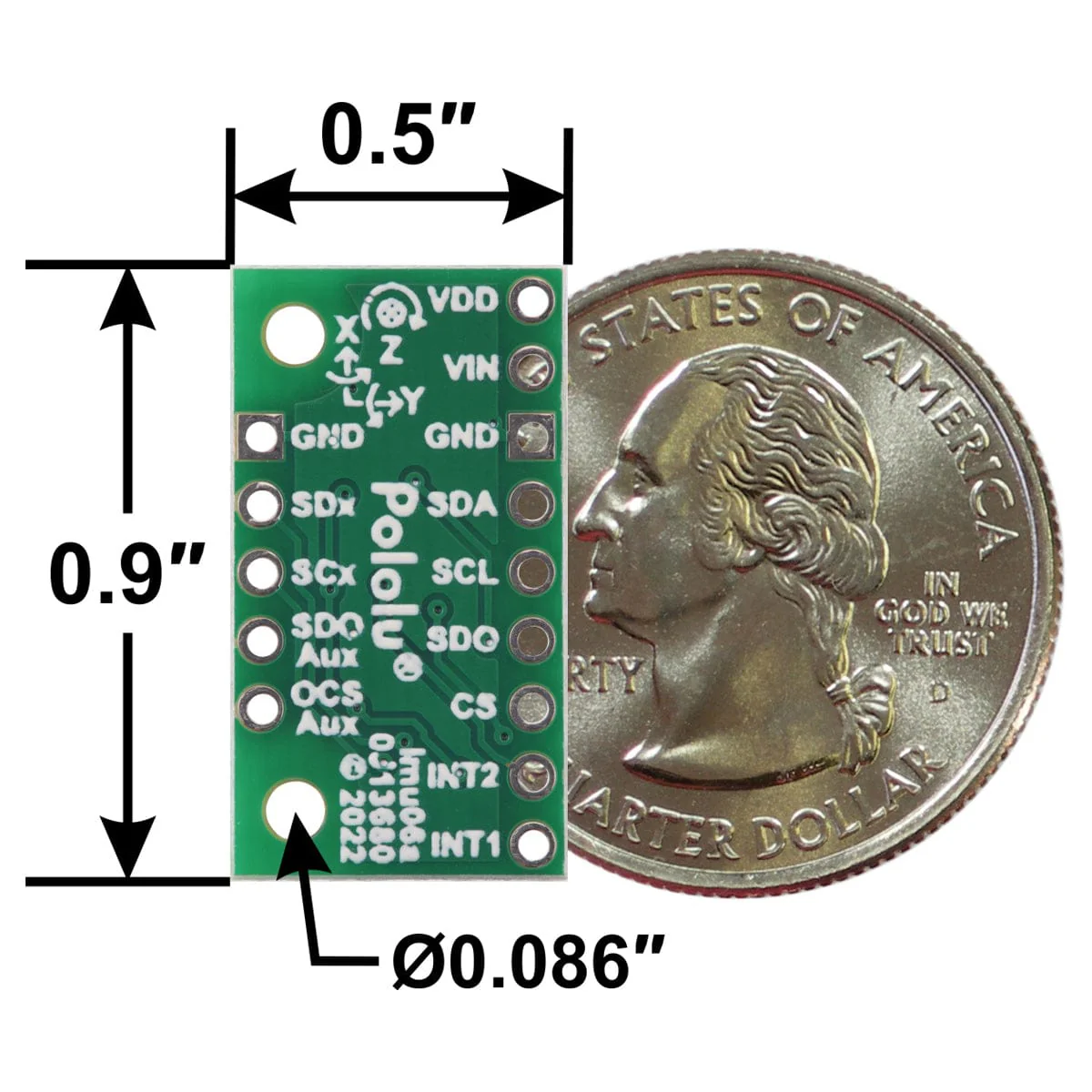 - Weight without header pins: 0.6 g (0.02 oz)
