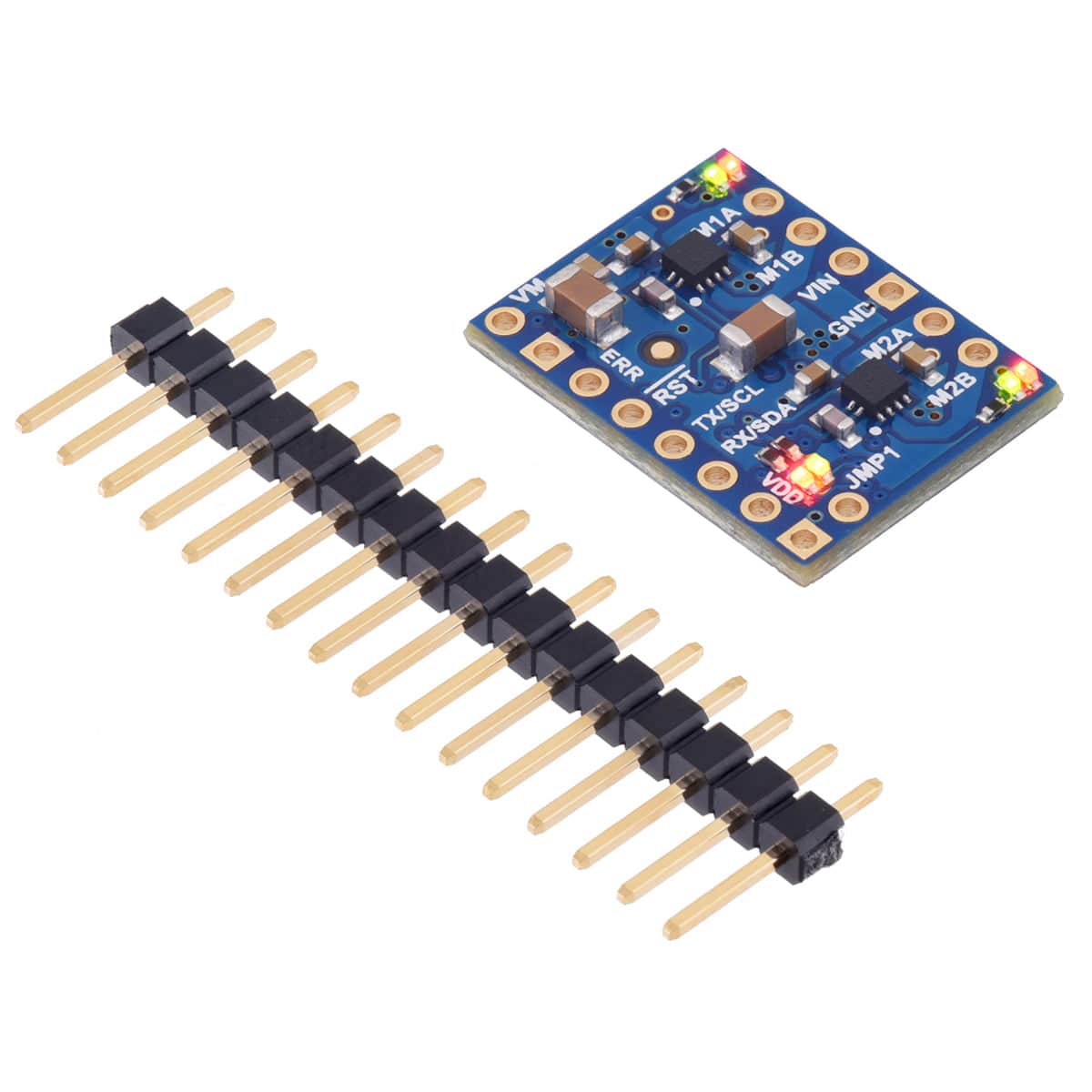 - 1x Motoron M2U550 Dual Serial Motor Controller (with/without pre-soldered headers - select an option before adding to your cart)