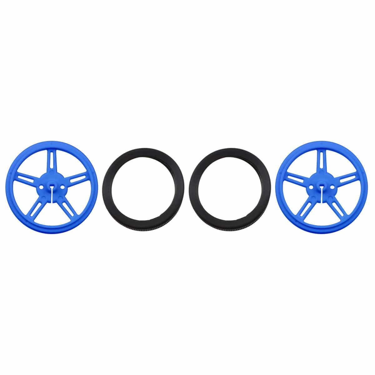 This is the blue version of our 60×8mm wheel pair. These same-sized wheels are also available in red, yellow, black, or white. Motors and hubs not included.