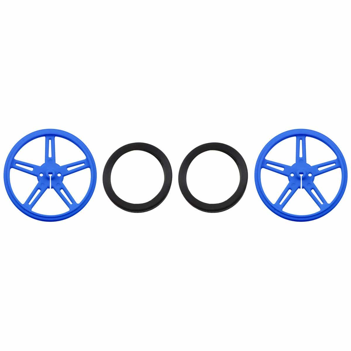 This is the blue version of our 70Ă8mm wheel pair. These same-sized wheels are also available in red, yellow, black, or white. Motors and hubs not included.