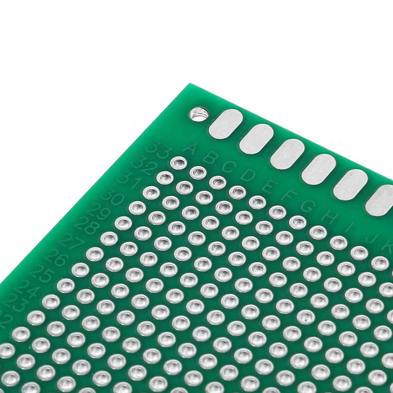 This is a 10-pack of 7x10cm double-sided Proto PCBs with a 2.54mm pitch (the space between the pads). 2.54mm is arguably the most common pitch, used on most popular development boards from the Raspberry Pi 5's GPIO header to the Raspberry Pi Pico pins to the XIAO and more!