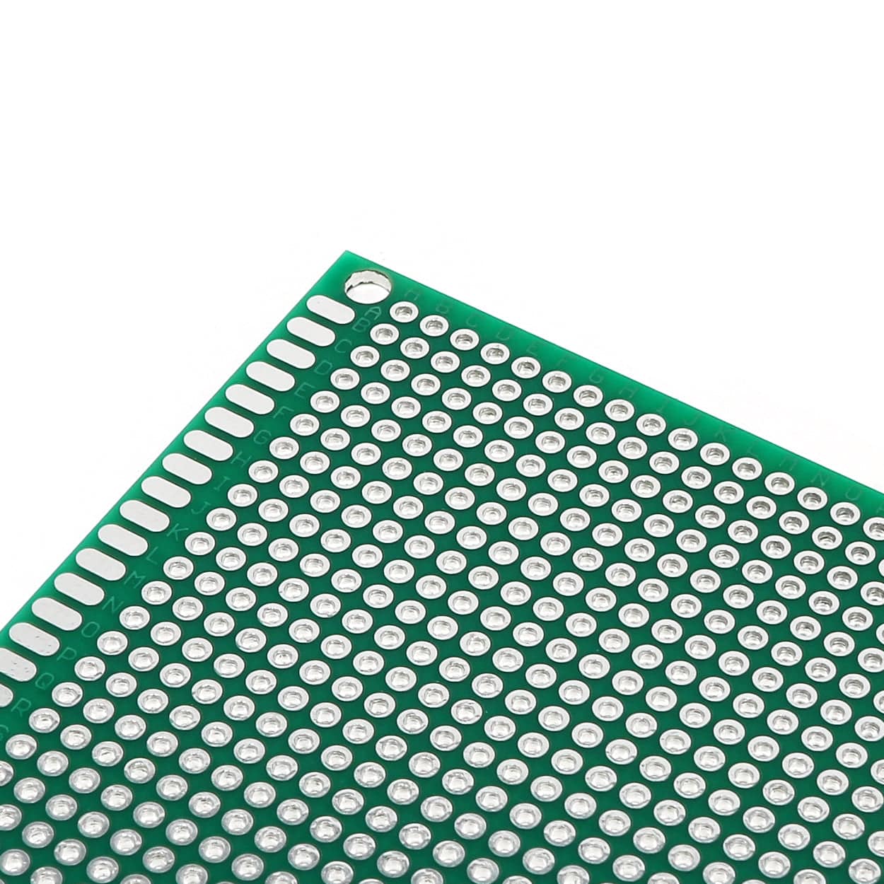 This is a 10-pack of 7x9cm double-sided Proto PCBs with a 2.54mm pitch (the space between the pads). 2.54mm is arguably the most common pitch, used on most popular development boards from the Raspberry Pi 5's GPIO header to the Raspberry Pi Pico pins to the XIAO and more!