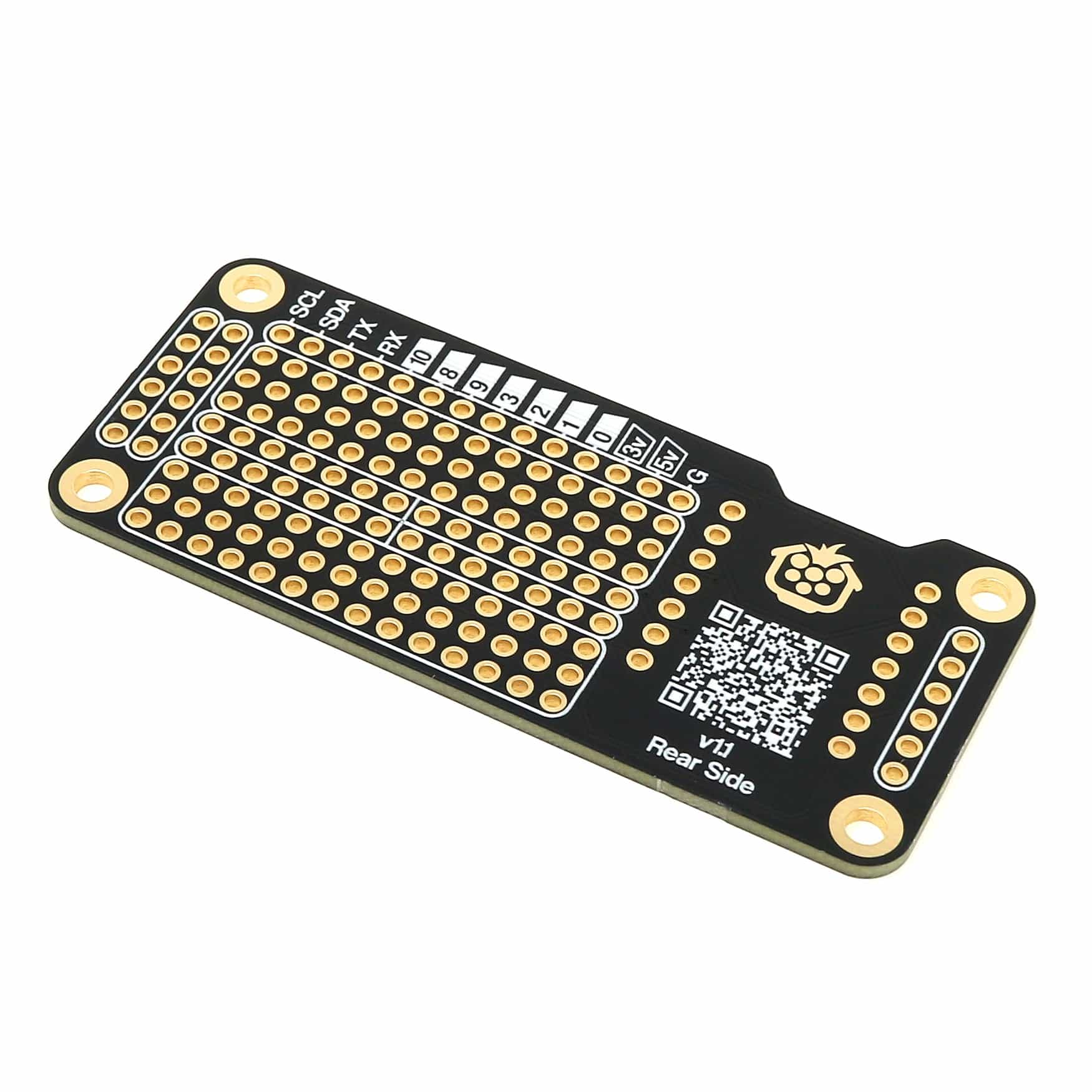 The XIAO's GPIO pins are broken out in order along the top of this prototyping area, making it easy to connect to the IO you need. The central rails are split as indicated by the white frame, but are easily bridged with solder if you want to connect them.