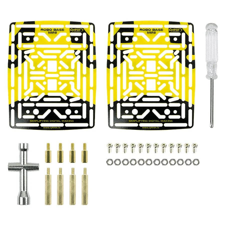 The Cytron Robo Base Mini is a compact and flexible robotics chassis platform designed for building small mobile robots or adapting your microcontroller board to other robot chassis. Made from durable 1.6 mm PCB material, it offers a cost-effective alternative to metal or acrylic-based frames.