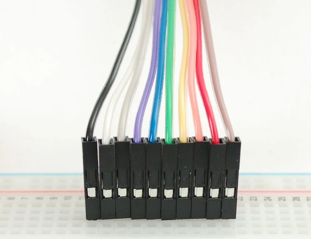 They have 0.1" male header contacts on one end and 0.1" female header socket on the other, fit cleanly next to each other on standard-pitch 0.1" (2.54mm) headers and clip neatly into breadboards. The best part is they come in a 40-pin ribbon cable. You can always pull the ribbon wires off to make individual jumpers, or keep them together to make neatly organized wire harnesses.