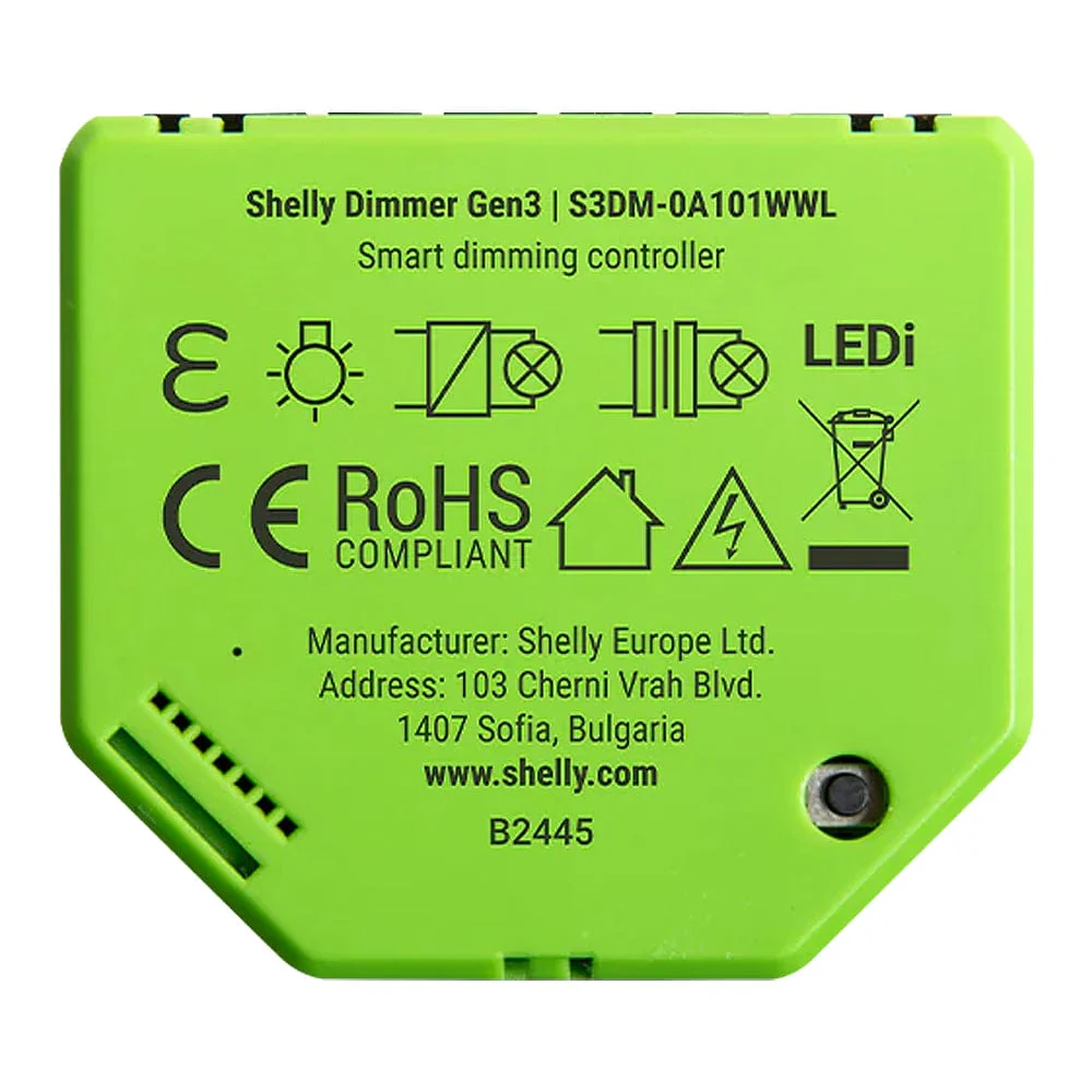The Shelly Dimmer Gen3 is a smart dimming controller for seamless remote control of dimmable lights and drivers. It can be used with or without a neutral wire. Precise measurement and power monitoring is possible when used with neutral. A bypass is required when the device is used without neutral and the load is under 20W.