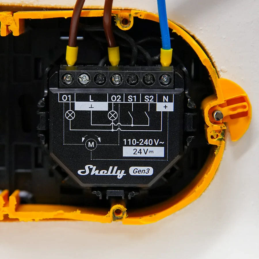 Shelly 2PM Gen3 can be accessed, controlled and monitored remotely from any place where the user has internet connectivity, as long as the device is connected to a Wi-Fi router and the Internet. It can be retrofitted into some electrical wall boxes, behind power sockets and light switches or other places with limited space - including the Shelly Wall Switch 2.